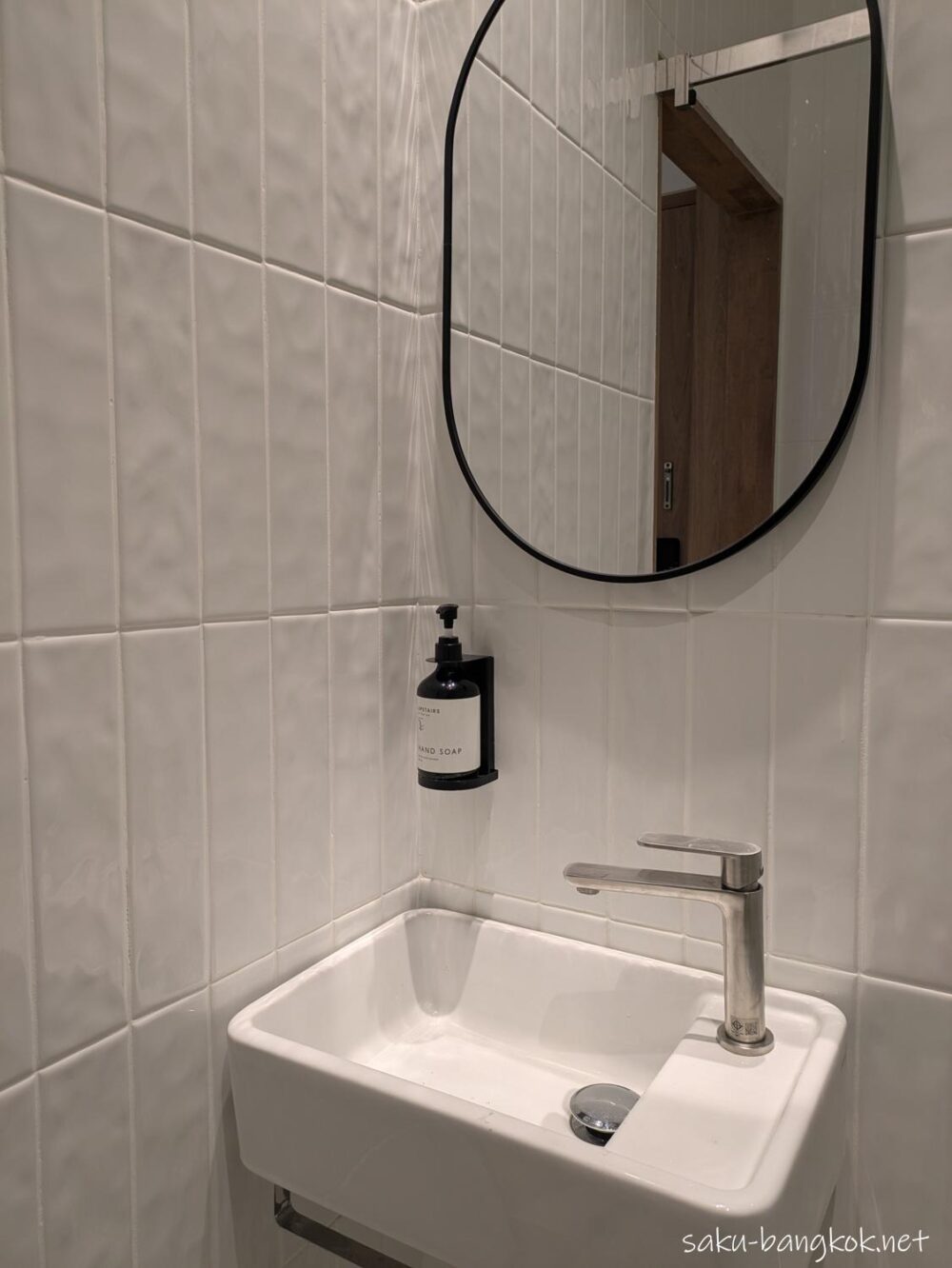 洗面台はシャワーブース内にあり。ミニサイズで少し不便だったけど、それくらいでとくだん問題なし。
