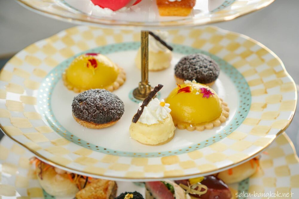 マンゴー、パッションフルーツ、ライチなどのタイらしい南国フルーツが使われているし、セイボリーにはタイ風味のものがあったりして、ほどよくタイを感じられるアフタヌーンティーだと思います。