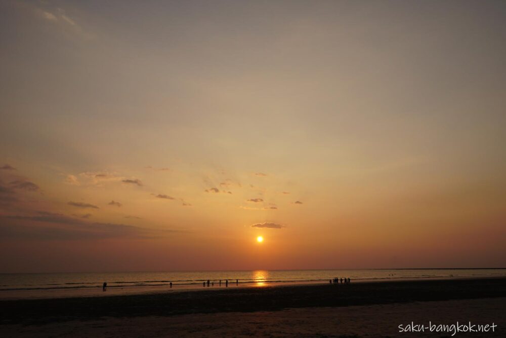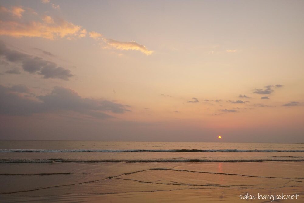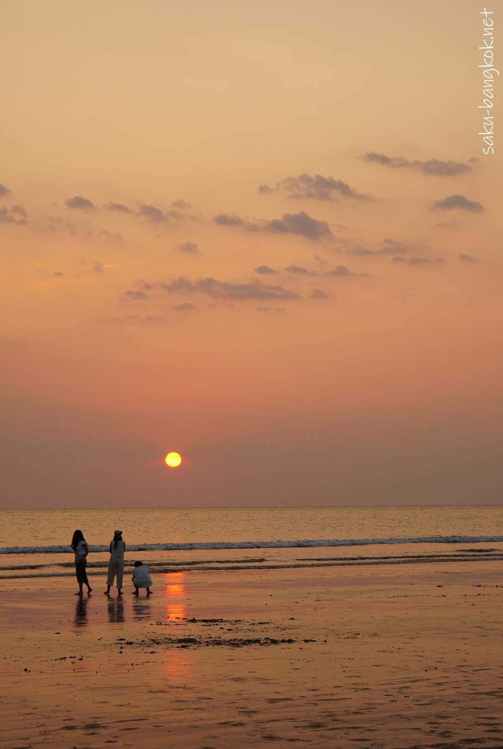 初日はホテル(ラソラヤカオラック)前で夕日を見ましたが、2日目は遠浅のメモリーズビーチまで夕日を見に行きました。