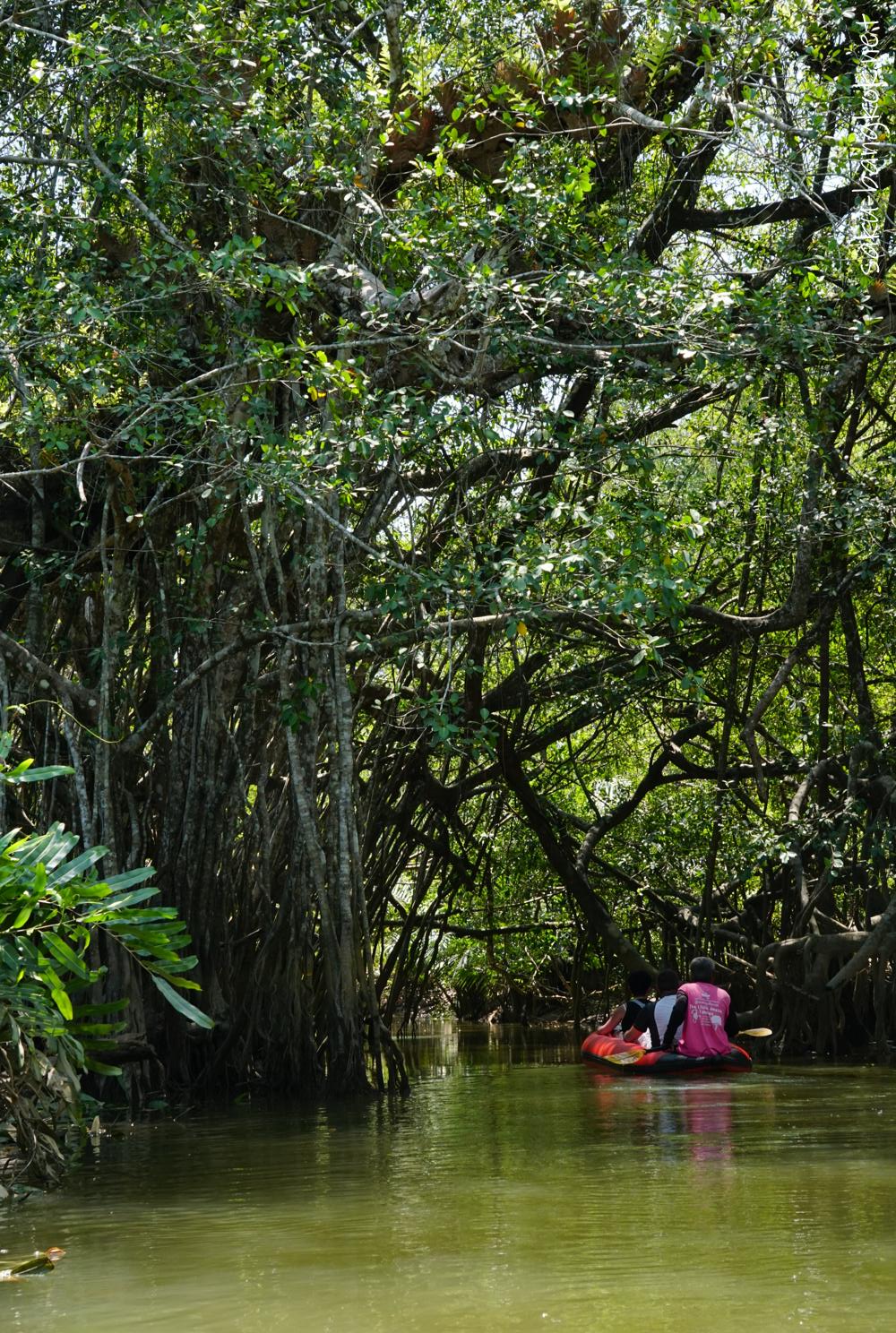うっそうとしたバンヤンツリーのジャングルを、ゴムボートに乗って遊覧。