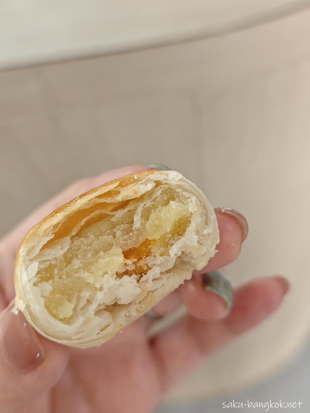 タオソーは、中華風パイ生地に包まれた緑豆餡のお菓子