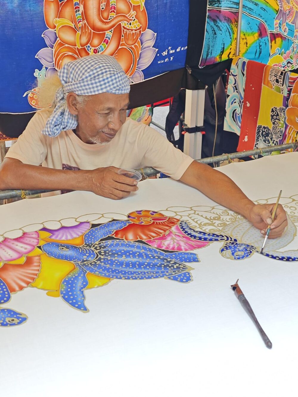 バティック(ろうけつ染め)の実演