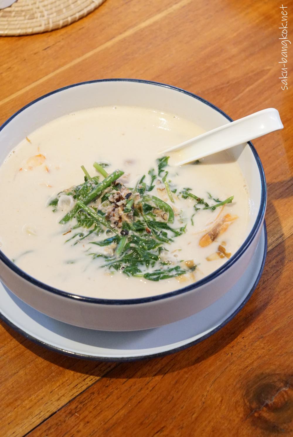 トムガティ:まったく辛くないココナッツミルクスープ、海老入りで鰹節みたいな風味も