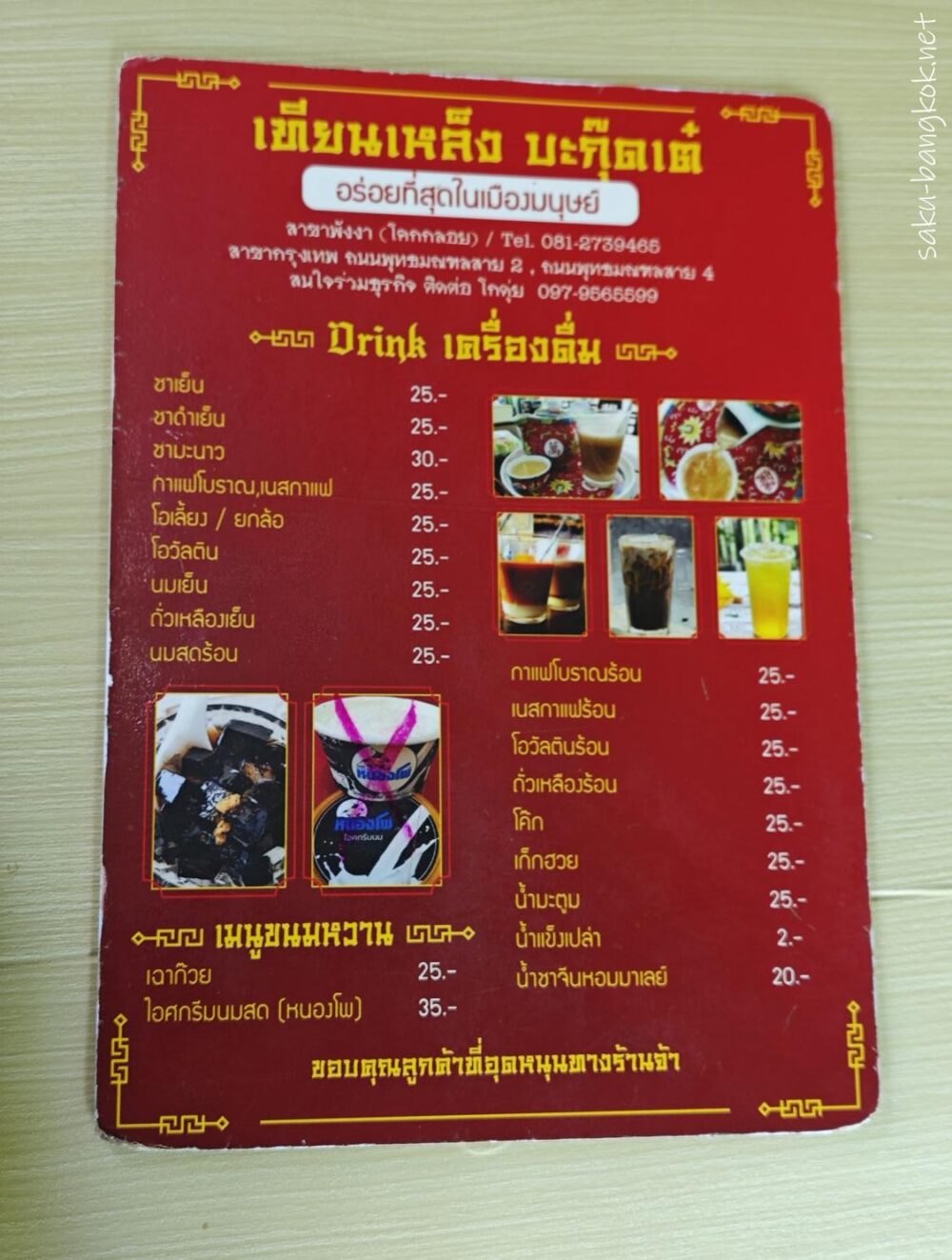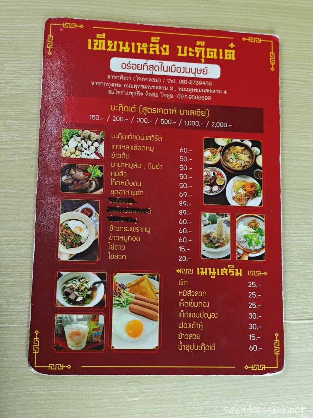 バクテーはサイズによってTHB 150~THB 2,000 まであり、私たちはTHB 500のセットを2人でいただいてちょうどくらいの量でした。