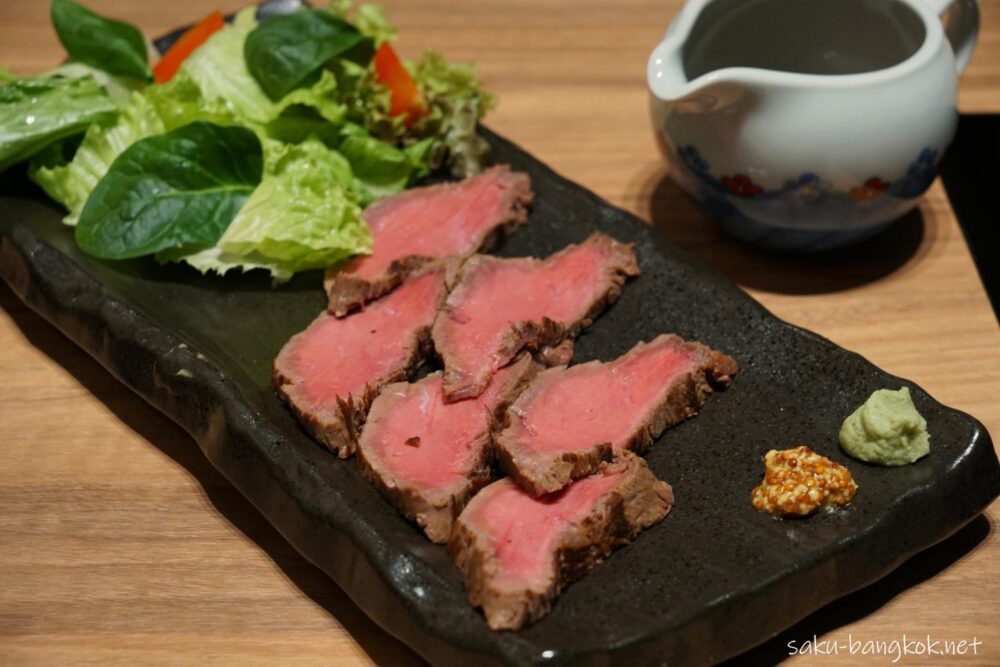 アラカルトメニューからいただいたのは、あか牛冷製ローストビーフ THB 690++。