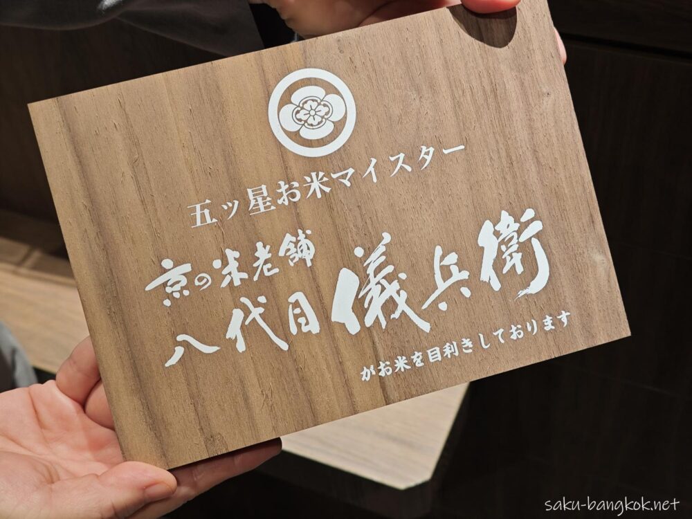 あまりに美味しいのでお聞きしたら、京都のお米屋さん八代目儀兵衛の五つ星お米マイスターが目利きしたお米を使用しているそうです。