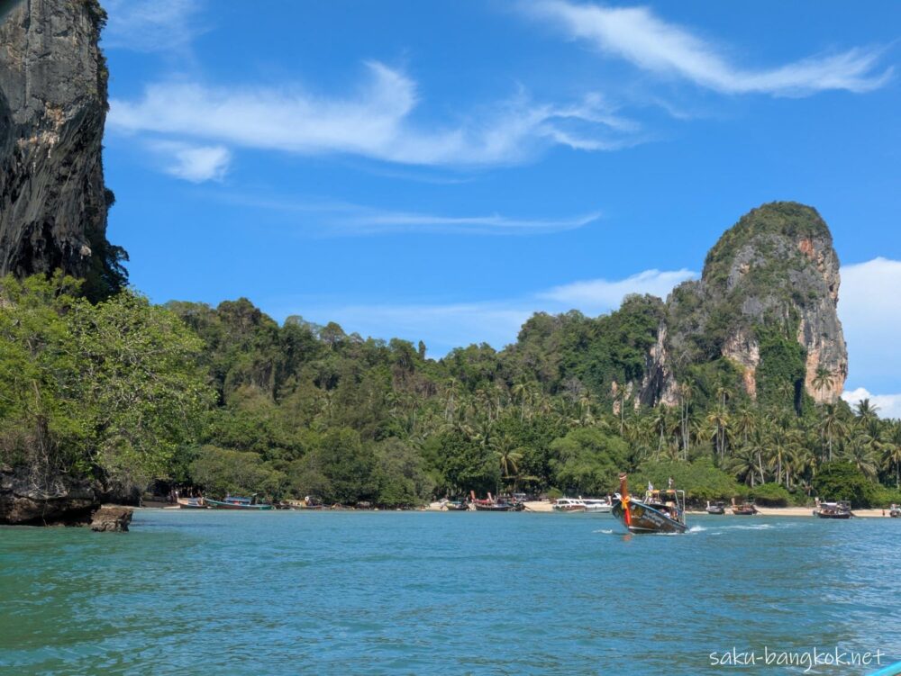 クラビらしい石灰岩の岩山を眺めつつライレイ・イースト・ビーチに入港。