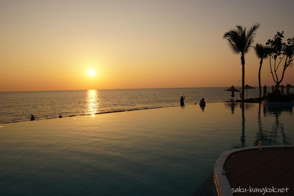 メインプールは大きくて子供用遊具もあるから家族で遊ぶのにぴったりだし、ビーチ前にはバーと大人専用インフィニティプールがあって、ここからの夕日は素晴らしかった。
