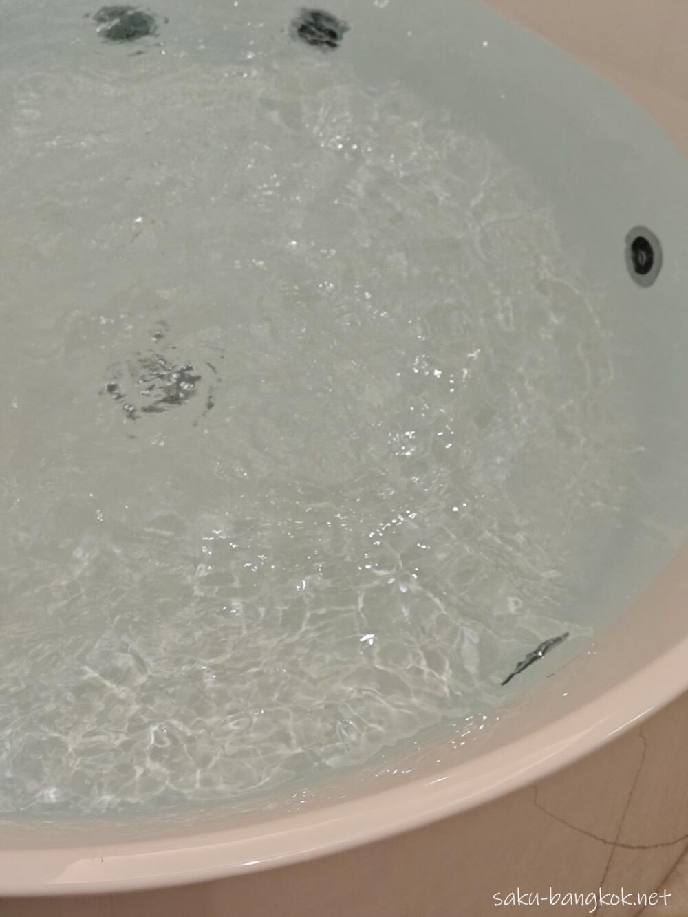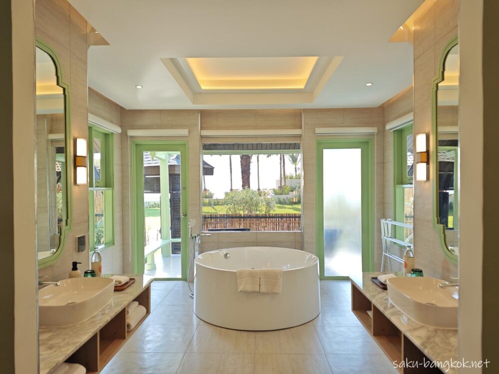 部屋付きのプライベートプールはしっかり泳げるくらい大きく、さらに大きな円形のバスタブもあり、心ゆくまでゆっくり過ごせるお部屋でした。