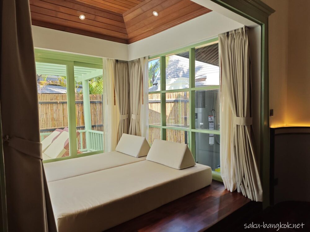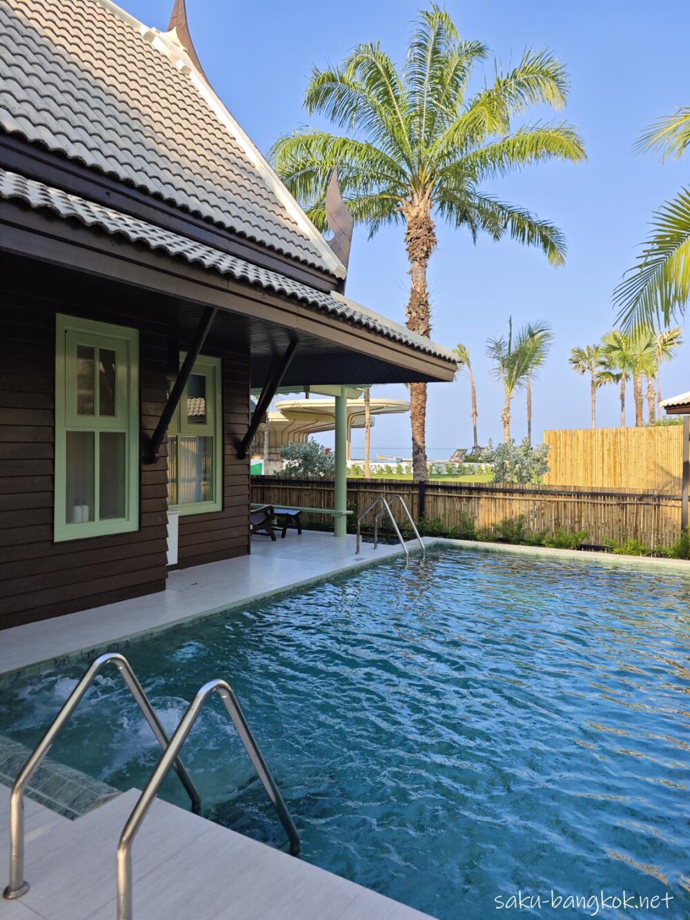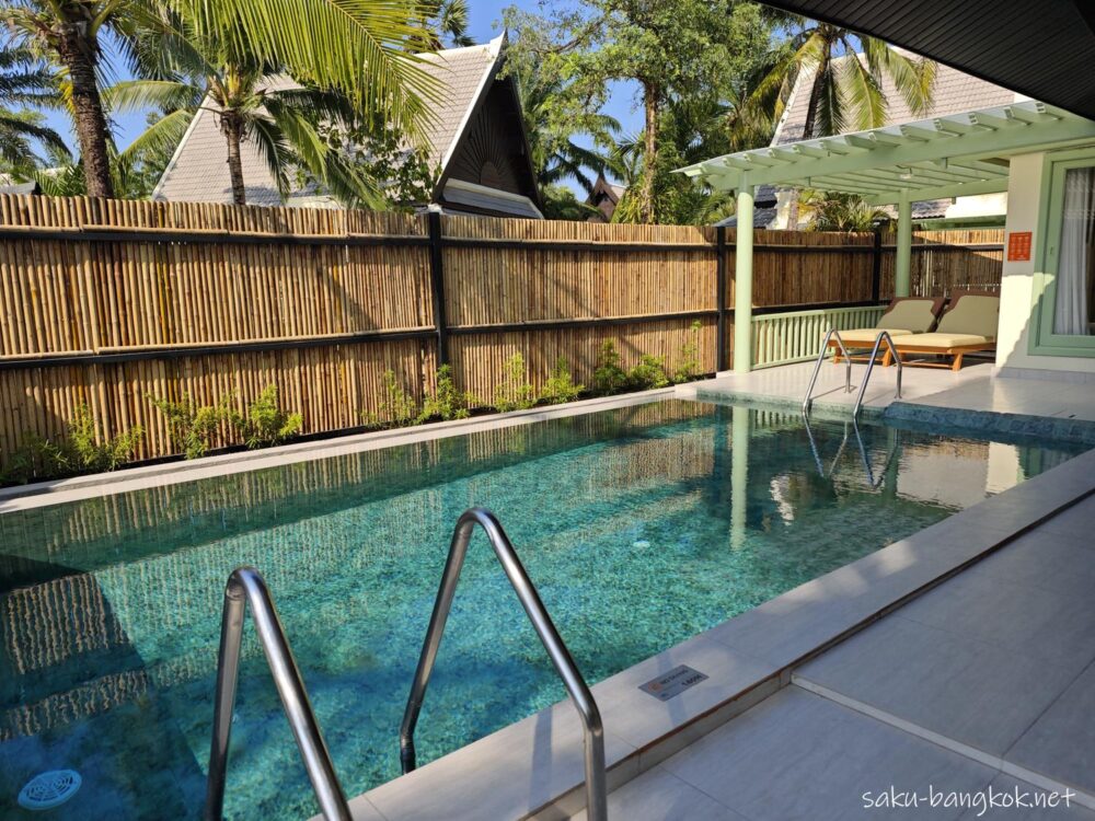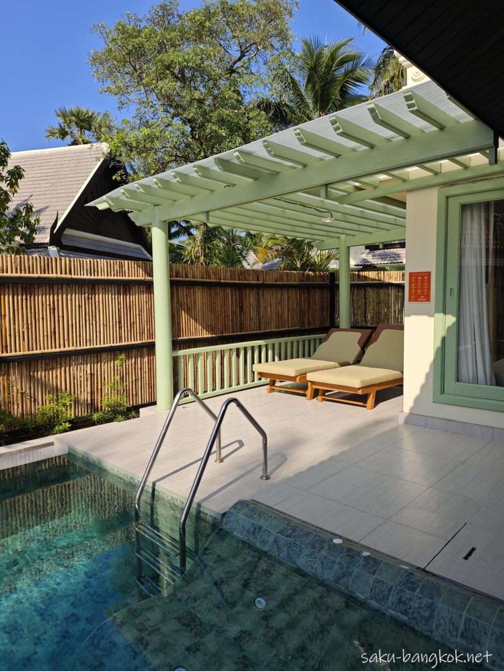 お部屋も広々していて、しかもプライベートプール付きのヴィラで贅沢三昧で最高。