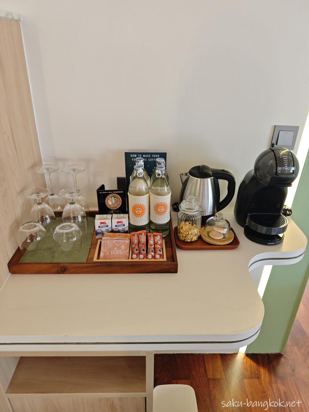 デラックスルームを含むすべての部屋タイプにツードアの冷蔵庫があるのが特徴!