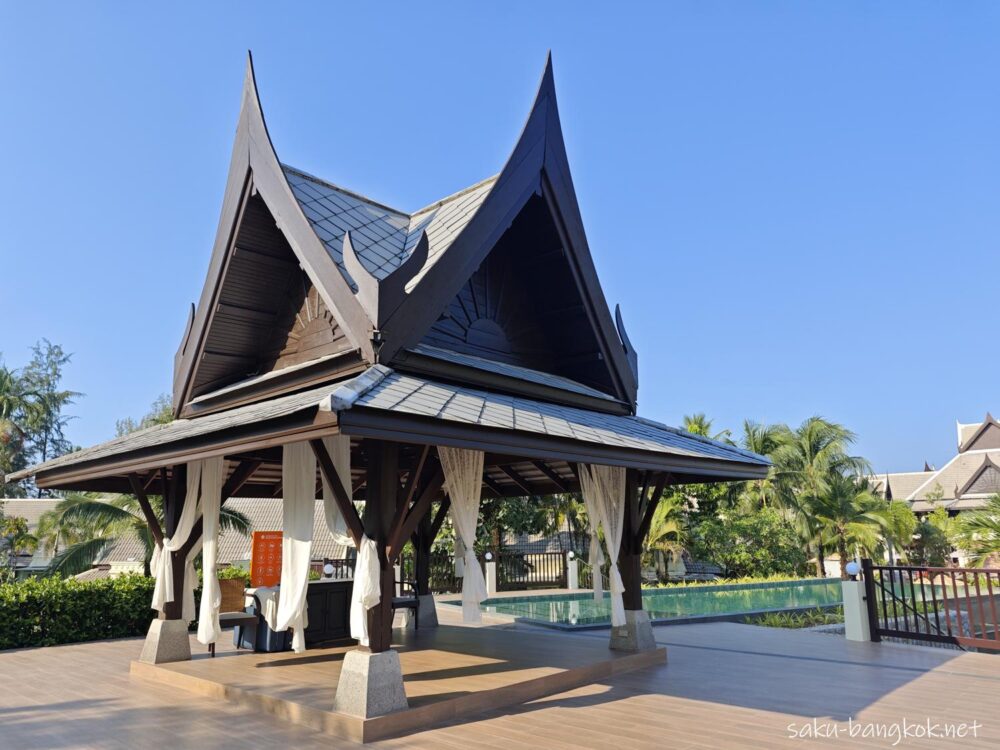 ジムの上の、メインプールを見渡せる位置に屋外マッサージを受けられる東屋(サラ)があります。