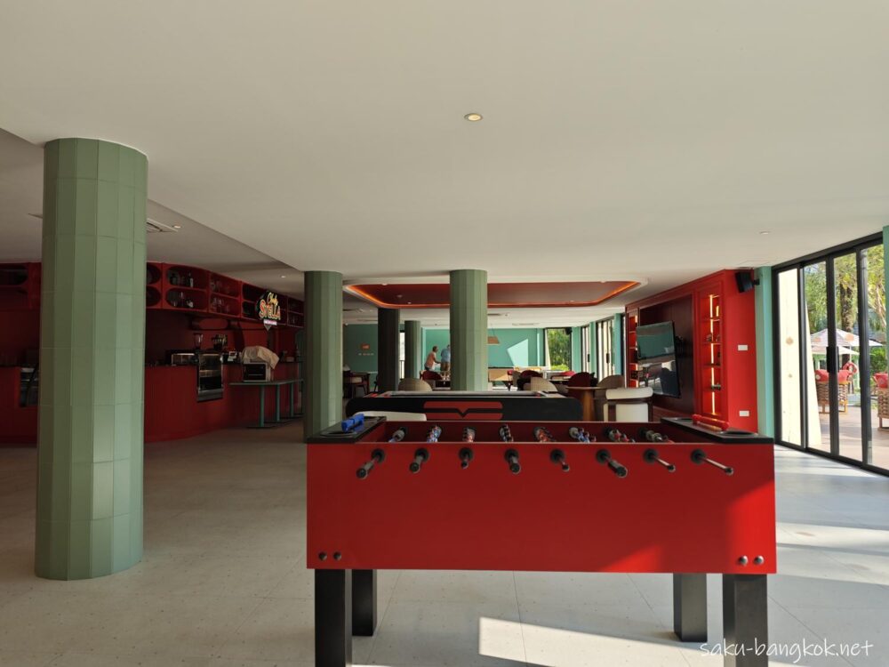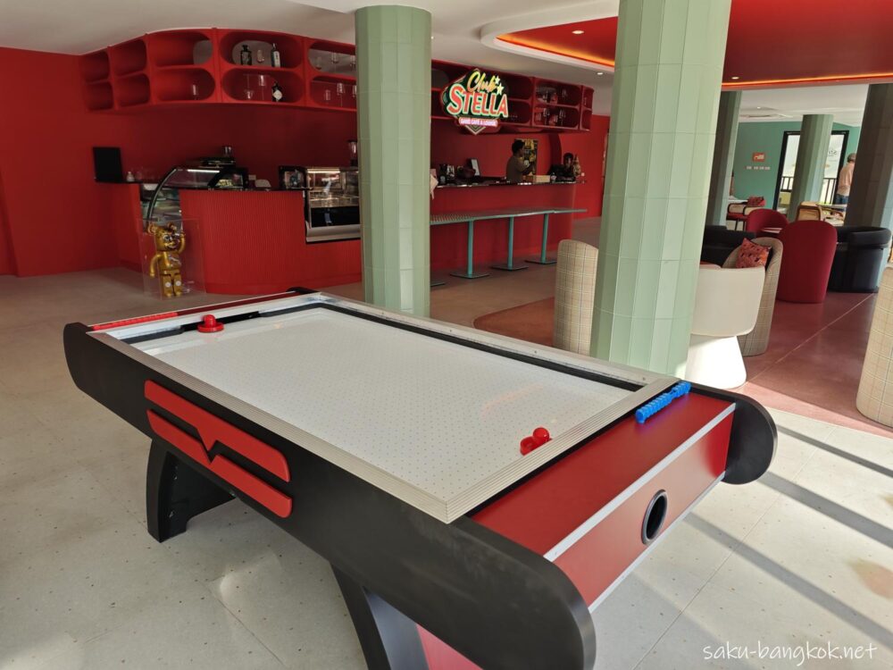 屋内スポーツバー「CLUB STELLA」では、涼しい屋内でビリヤード、エアホッケー、ダーツなどを楽しむことができます。