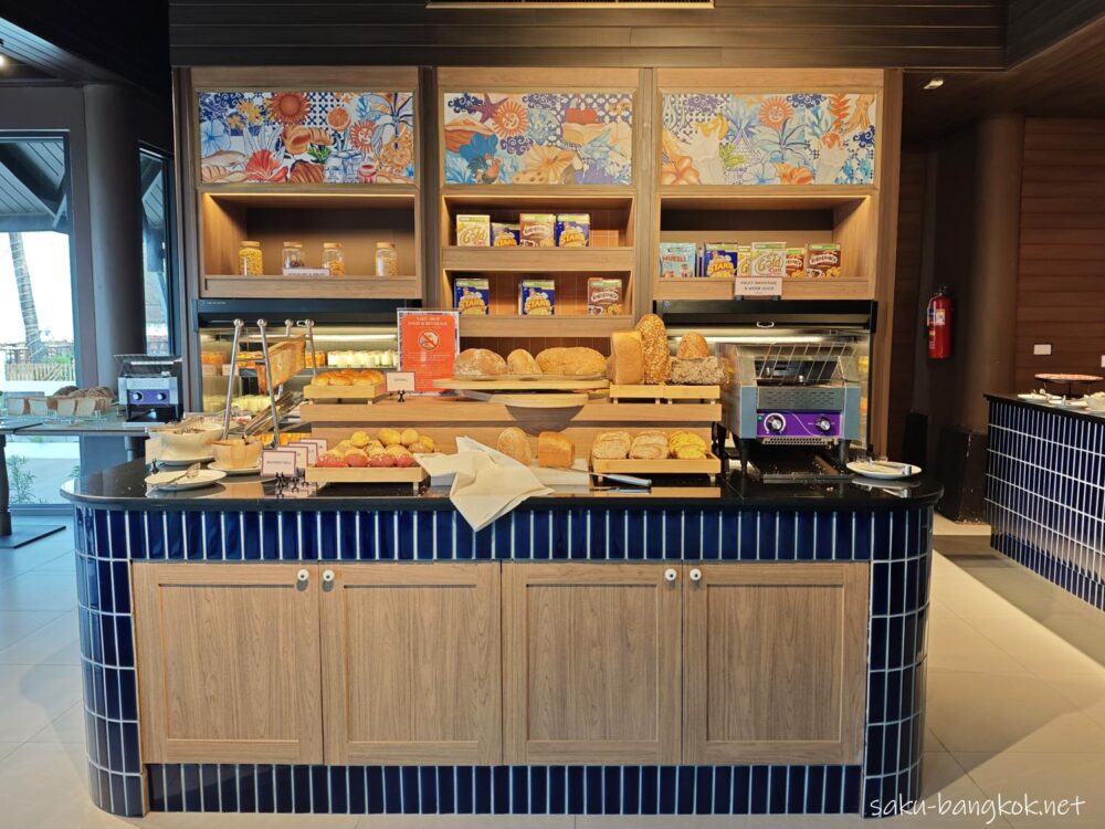 穏やかな青い海を見ながら朝食ブッフェをいただきます。