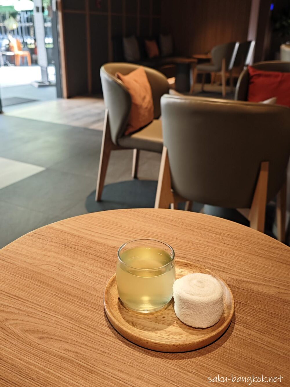その後準備ができるまで、冷たいお茶を飲んでのんびり。