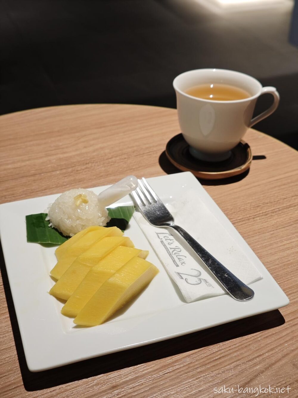 終わったら受付スペースに戻って、カオニャオマムアンをいただいきながらまったり。贅沢な時間でした。