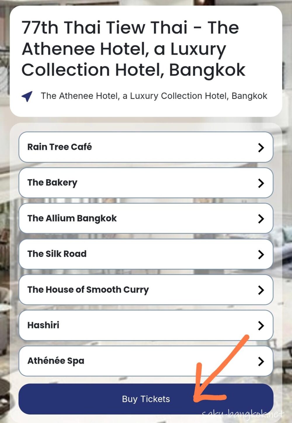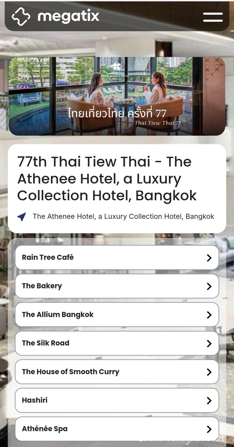 ①Megatix の一覧の中から購入したいホテルをタップ