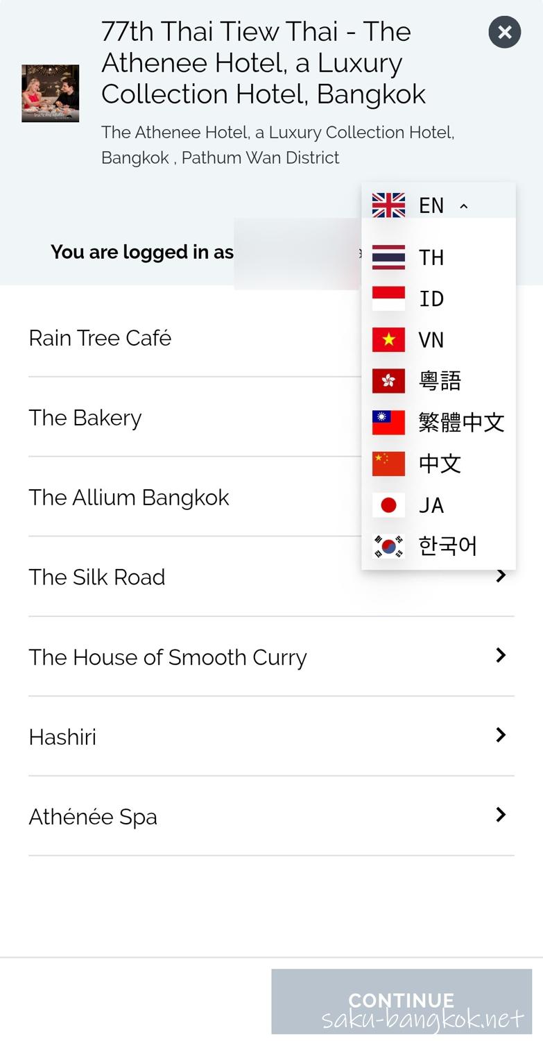 ③「Buy Tickets」をタップし、目的のバウチャーをカートに入れる。システム言語を日本語に変えることも可能。