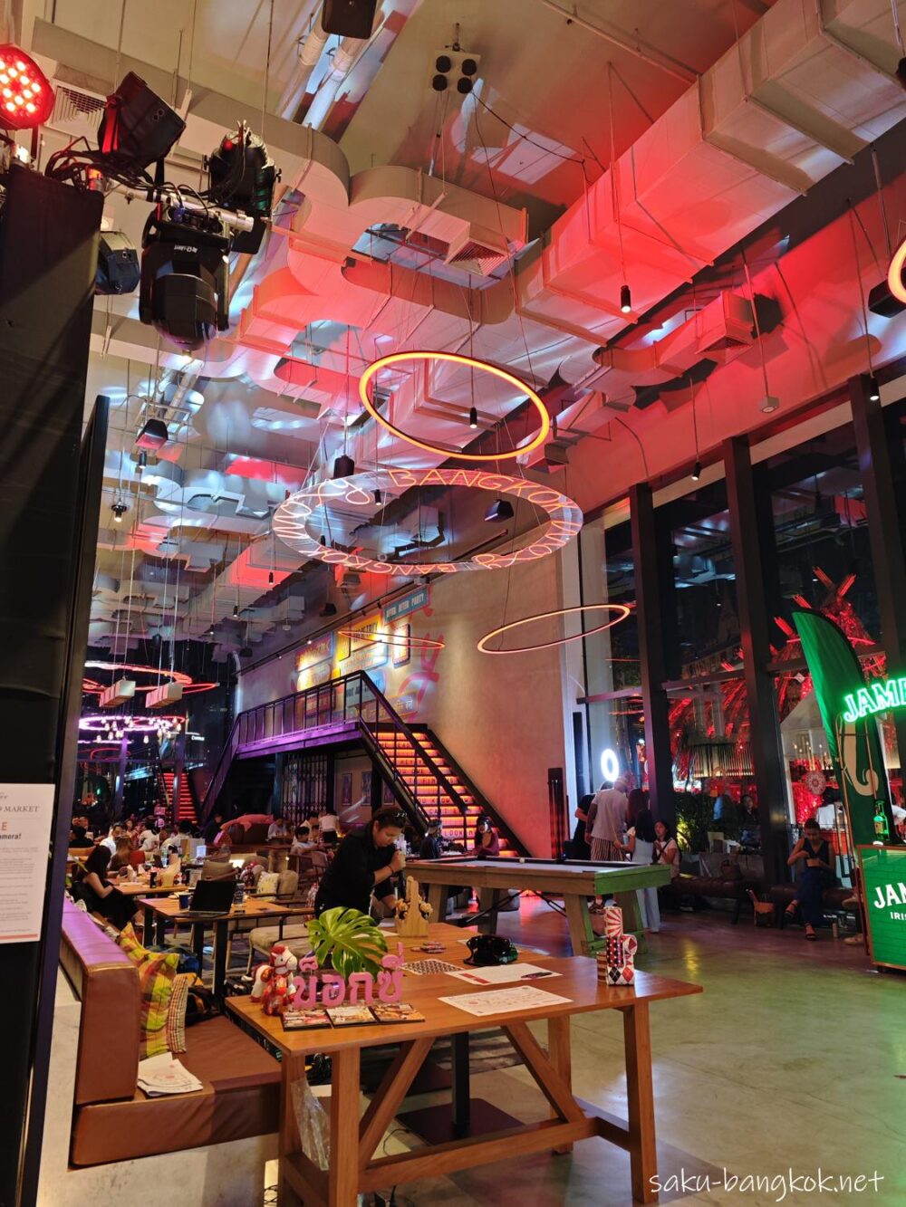モクシー バンコク ラチャプラソン9階のテラスがメイン会場でフードのブースが立ち並んでいます。