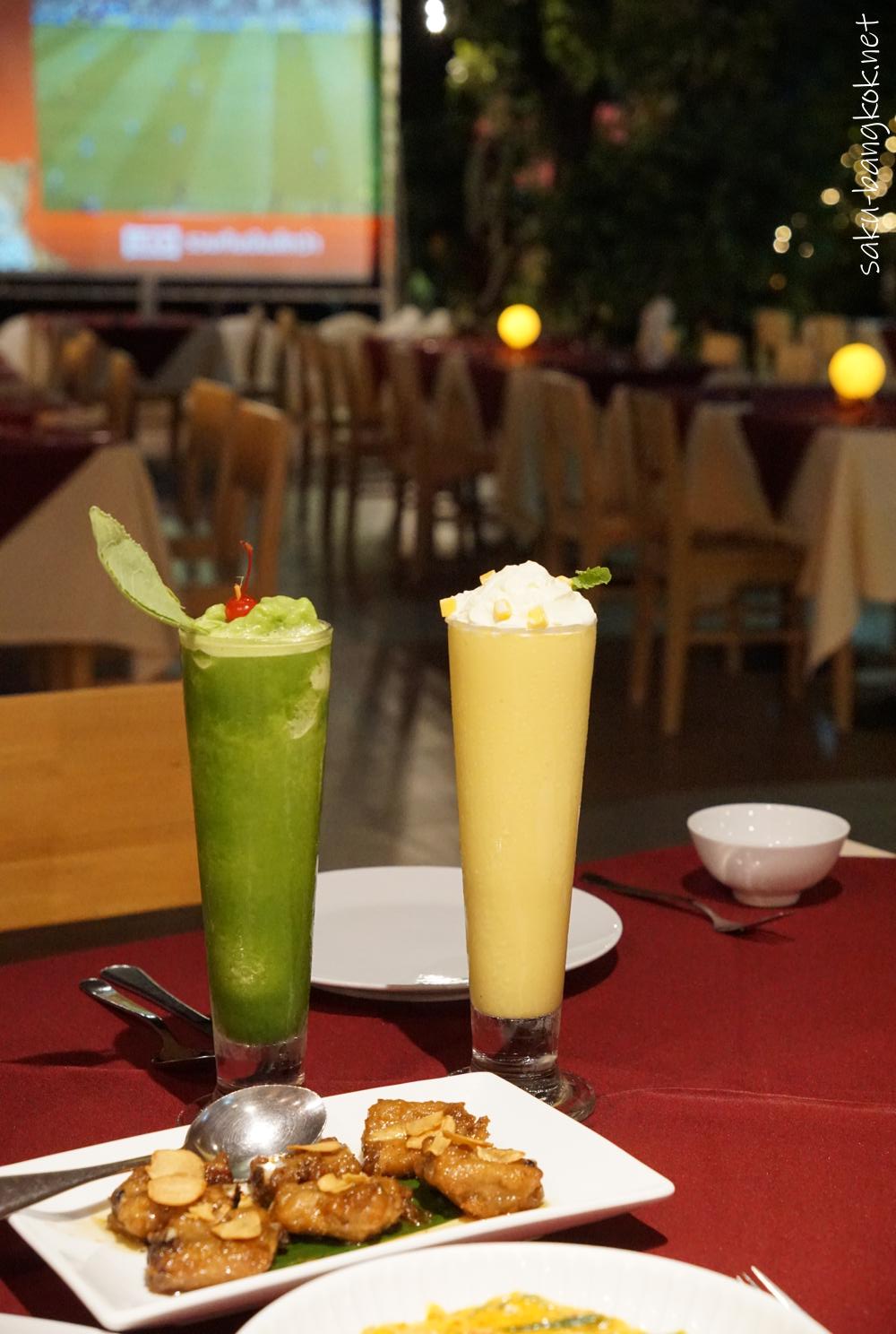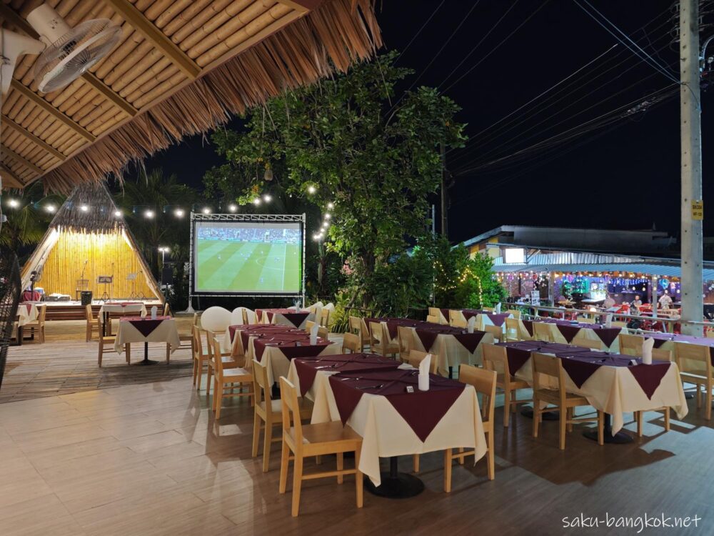 ビーチリゾートらしいオープンエアのきれいなお店で、大きなスクリーンではサッカーの中継をやっていました。