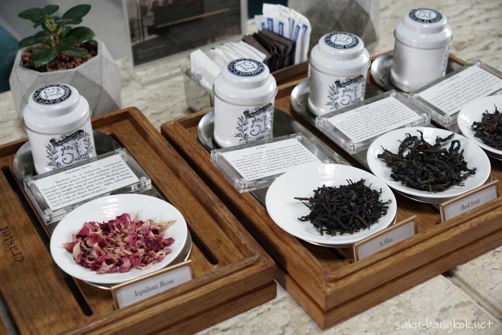 数ある中からとくにおすすめされたのが、タイのティーブランドNo.51の季節のブランドティー5種。茶葉の香りを確かめながら選ぶことができます。
