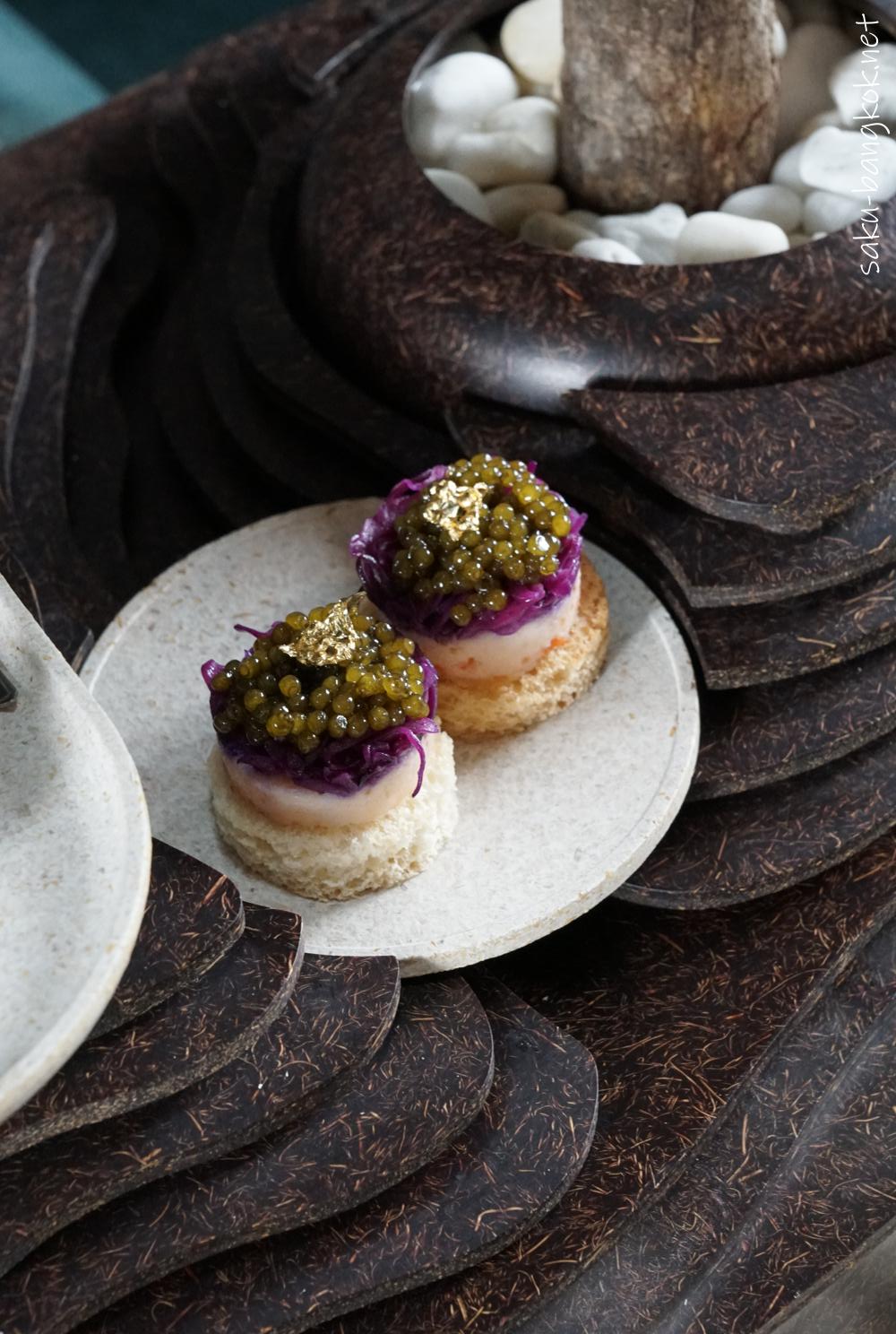 さらに!前菜のホタテのセビーチェは、炎をつける演出あり。