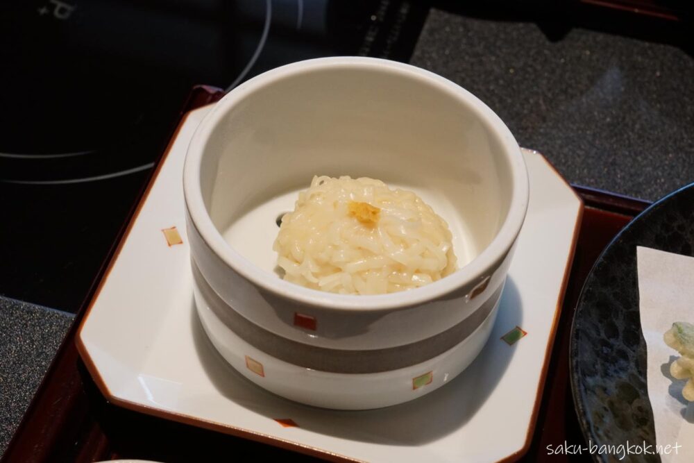 とくに茶碗蒸しの方は普通の卵の茶碗蒸しと違って、白くてぷるぷる柔らかくて絶品でした。