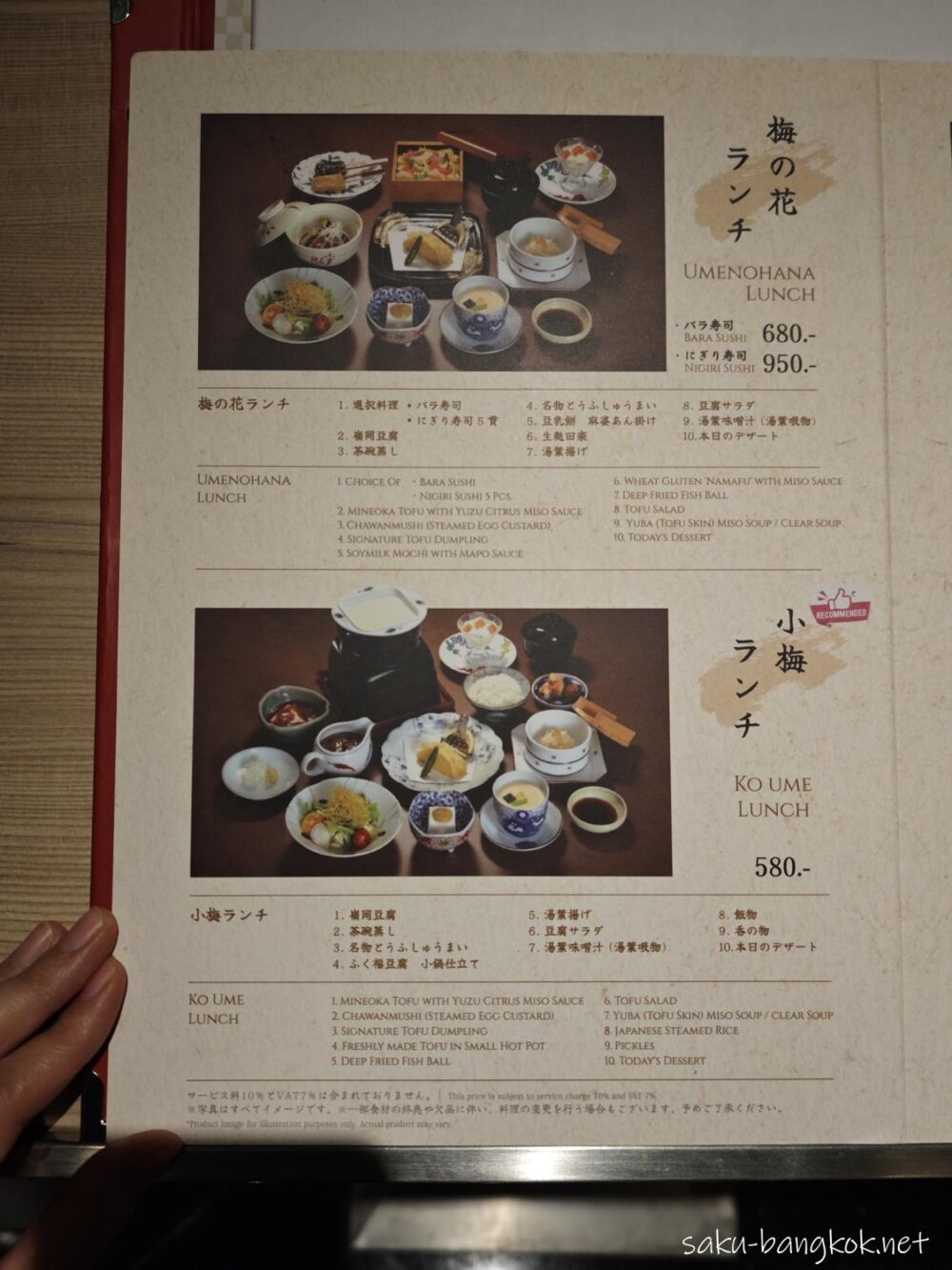 友達がオーダーしたのは小梅ランチ THB 580++。