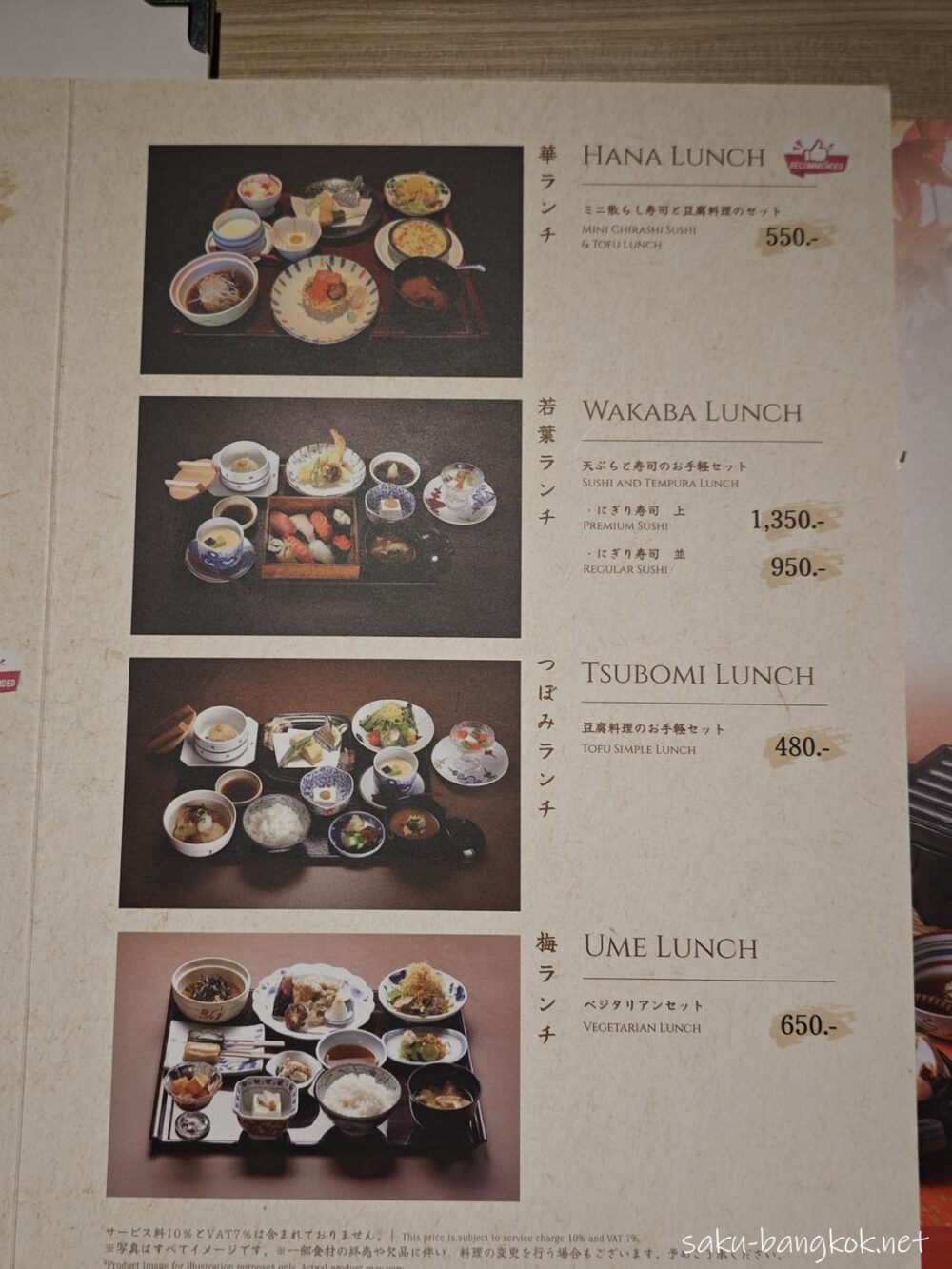 「梅の花」ソラリア店のランチメニューはこんな感じ。