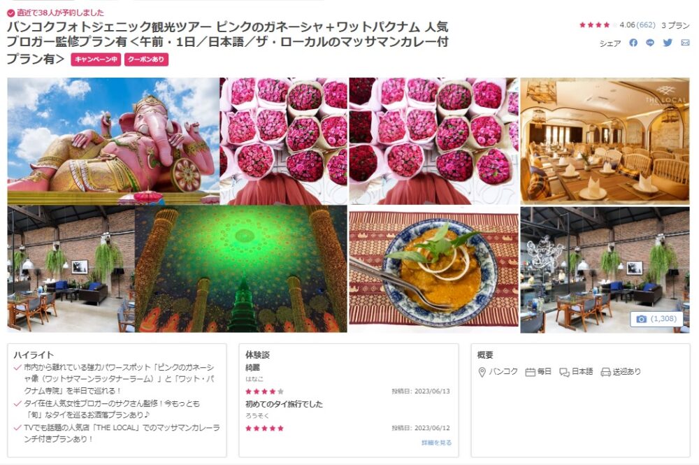 タイ旅行で地方の観光地に行く場合や、送迎やスパなどの予約する際に現地アクティビティ予約サイトを利用するのが便利です。